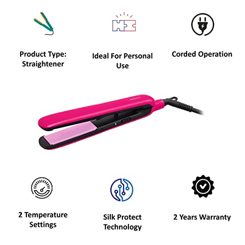 Silkpro Care Technology: The SilkProtect technology ensures optimized temperature to minimize the heat exposure, leaving hair with a silky-smooth look.