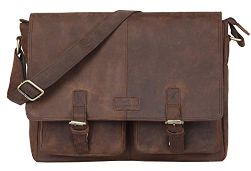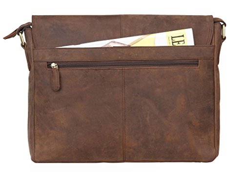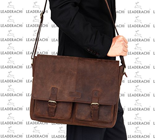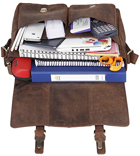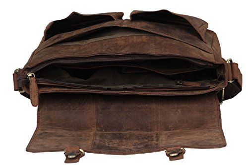 * This laptop Briefcase bag is a perfect satchel bag you don’t want to miss. Made of Vintage Hunter leather and detailed with disordered wrinkles and scratches, this Briefcase bag will make wearer stand out of all, as it presents the style of retro and wildness and form a special skin effect to make it the first choice in major brands. * Briefcase is designed with plenty room of 8 pockets, ends chaos and keeps everything in their right position. You can also take your laptop in it for business, school, everyday, overnight and other situations, as there is padded laptop sleeve will protect your computer. * Satchel bag has multiple usage, you can carry this business briefcase by the handle, wear on the shoulder as sling bag, or put it accross your body to be crossbody bag. Feature Material: Vintage Hunter Leather Color: Muskat Structure Details * Outer: 1 Zipper Pocket *Inner: – 2 inner slip pockets for small gadgets; – 1 large padded compartment for laptop; – 1 large compartment for other things. Dimension * Briefcase r bag: 16 “(L) * 14″(H) * 5″(W) * Laptop sleeve: 12″(L) * 10″(W) * Shoulder strap: 34.0”- 48.6″(L) * 1.5”(W) Upkeep 1.Apply cream/moisture lotion onto the leather surface, and use a soft cloth to complete the upkeep. 2.Avoid cleaning products with alcohol, turpentine or other mineral spirits as they will discolor and dry out leather. 3.Never allow water to soak into your bag. If the bag gets wet, do not use a hair dryer on it. Instead, absorb as much water as possible with a thick microfiber hand towel and allow the bag to air dry. Package includes *1 x Leather Briefcase Laptop Bag *1x adjustable strap