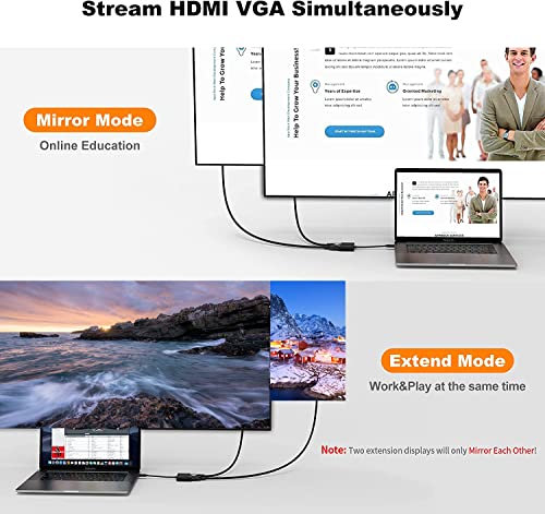 Wide Compatible: This USB C to HDMI VGA converter is compatible with MacBook Pro 2020 2019, MacBook Air 2018 2019 2020, iMac (Mid 2017) and newer, iPad Pro 2018 2020, XPS 12 (9250)/XPS 13/XPS 15. HP EliteBook Folio G1/Spectre 13. Thinkpad E580/T470/T480/X1 Carbon 2017/Yoga 900 910/912. Chromebook Pixel (2015)/Pixelbook/Pixel Slate, Surface Book 2 Go 2-in-1. Galaxy TabPro S/Tab S4, other support DEX (Galaxy S22 Ultra/S20/S10/S9/S8/Note 8/Note 9) and other USB C device that support DP ALT mode.