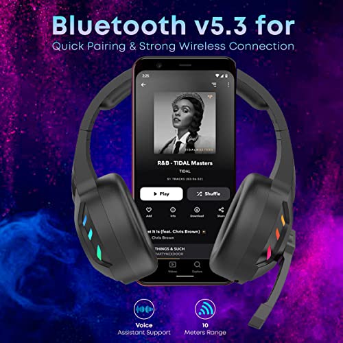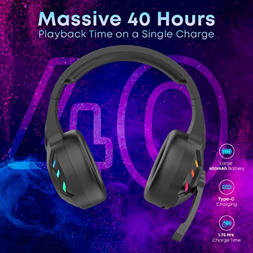 Large 40MM dynamic drivers to produce natural sound quality with punchy bass; Enjoy a gaming marathon for 40Hours non-stop; Built-in RGB lights to enhance the gaming ambience (light can be turned off)