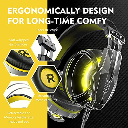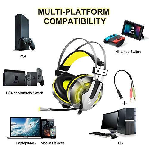 Multi-Platform Compatible: EKSA yellow gaming headphones work great with all NEW Xbox One controllers, PS4, and compatible mobile/tablet devices with a 3.5mm connection.Compatible with Mac, Windows XP, Vista, 7, 8, and 8.1. Please note that you need an extra Microsoft Adapter (Not included)if you own an old version Xbox One controller.