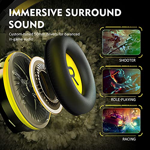 Advanced 50mm Drivers: Built-in powerful 50mm magnetic neodymium driver captures footsteps and judge the sound direction easier, feel the full force of an explosion, a grenade blast. Perfect for various games like PUBG, FPS, Metal Gear Solid, Call of Duty, Star Wars Battlefront, World of Warcraft Legion, etc.