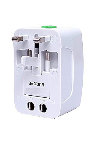 ESnipe Mart Worldwide Travel Adapter with Build in Dual USB Charger Ports with 125V 6A, 250V Protected Electrical Plug for Laptops, Cameras (White)