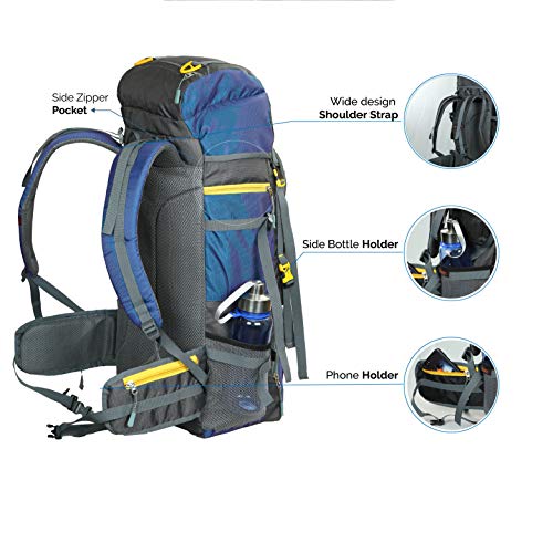 LARGE, SPACIOUS & MULTI UTILITY: The hiking backpack is 60 litres, which means it is triple times the normal requirement of a backpack. This backpack bag comes with a convenient LAPTOP SLEEVE inside the main compartment. It has got several straps, buckles, and pockets that make it suitable for adjusting a lot of travel stuff. This rucksack bag will facilitate you in all your sports, camping and hiking trips.