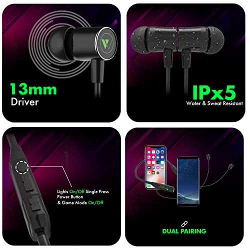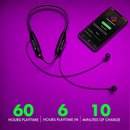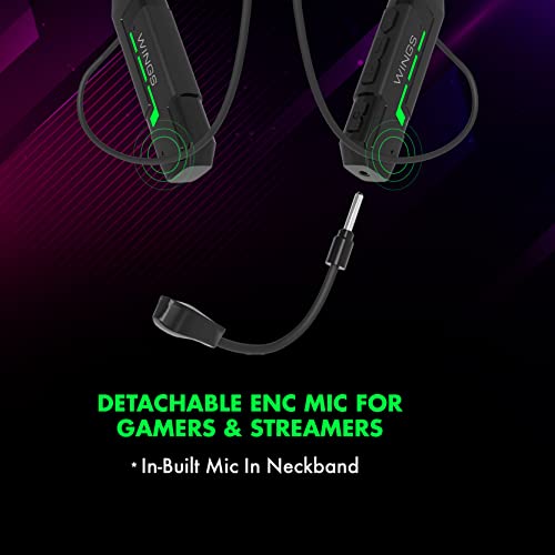 Wings Phantom1000 Gaming Neckband with Detachable Mic, 60 Hours Massive Playtime, 40ms Low Lag, 5.2 Latest Bluetooth, 15M Radius Coverage, Flash Charging with Gaming LED Aesthetics