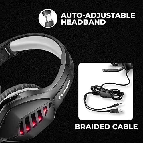 ERGONOMIC SOFT EARMUFF+ADJUSTABLE HEADBAND+LIGHTWEIGHT: Many people complain that wearing headphones for a long time will hurt their ears. Cosmic Byte headset shape are designed to naturally fit the human head, the earmuff is filled with soft memory foam, and adjustable headband help to fit different people. Made of light material, weight only 0. 95lb,