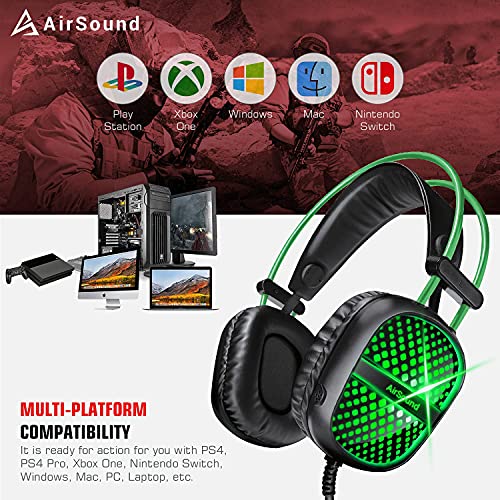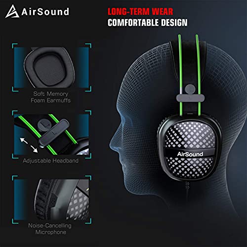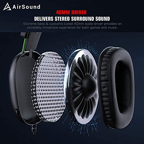 50MM DRIVER DELIVERS SURROUND SOUND – Airsound gaming headset offers an incredibly immersive experience for both games and music. When playing games, you can communicate effectively and clearly with your teammates and better recognize the sound of gunfire and footsteps of enemies. This headset is suitable for playing various games like Fortnite, PUBG, Call of Duty, Battlefield 1, God of war, and so on.