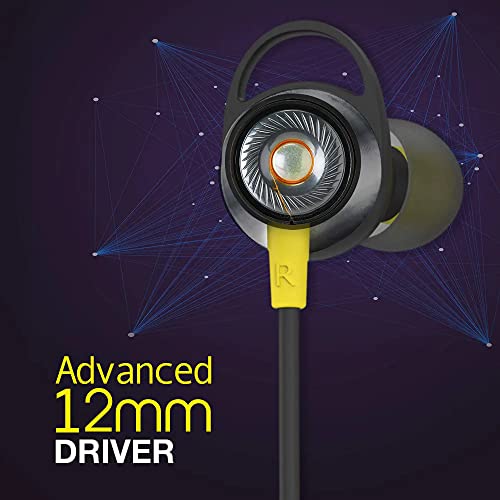 Infinity (JBL) Glide 120, In Ear Wireless Earphones with Mic, Deep Bass, Dual Equalizer, 12mm Drivers, Premium Metal Earbuds, Comfortable Flex Neckband, Bluetooth 5.0, IPX5 Sweatproof (Black & Yellow)