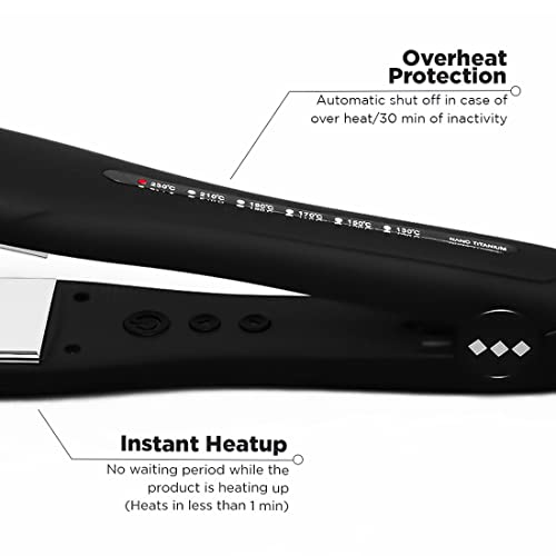 ULTRA-FAST AND HEATS UP WITH INSTANT RECOVERY: This hair straightener works without yanking your hair and heats up quickly.CONSTANT HEAT PERFORMANCE: Professional PTC and Dual Ceramic Heaters for immediate heat up and rapid heat recovery.