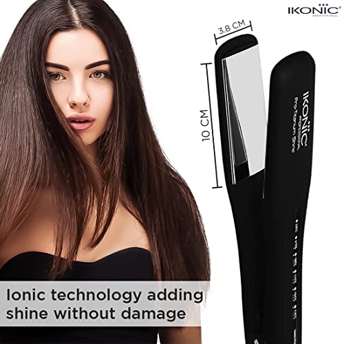 IKONIC PRO TITANIUM SHINE BLACK HAIR STRAIGHTENER WITH PROFESSIONAL PTC AND DUAL CERAMIC HEATERS FOR LONGER, THICKER, AND AFRO CARIBBEAN HAIR.