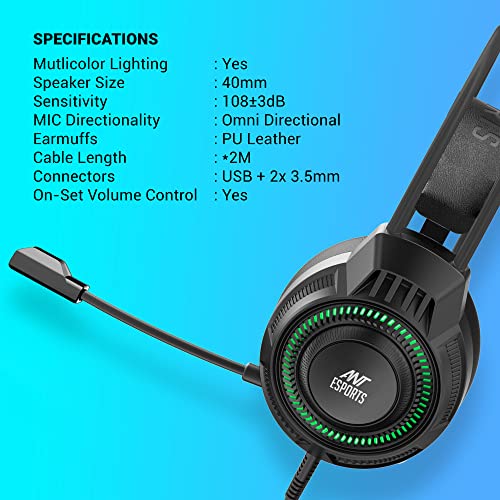 Pro LED Glowing Lights : Ant Esports H580 gaming headset has Pro LED lights effect in multiple colors on both sides. Soft and bright colors create a more attractive atmosphere when playing PC & Video games