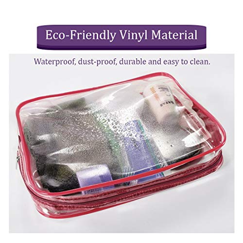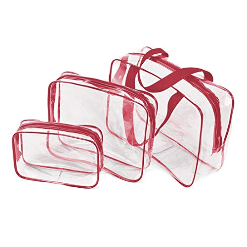 This transparent travel cosmetic bag made of PVC, The waterproof vinyl is easy to clean with a damp cloth. The nylon strap is reinforced and double-stitched so it can easily withstand heavy loads.