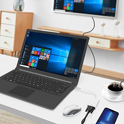 [INSTANT ADAPTER]: Exquisitely designed adapter to converter USB-C to VGA output, so as to mirror or extend display from laptop to second monitor/projector/HDTV or other display. Suitable for meeting, conference, especially business trip and home entertainment.
