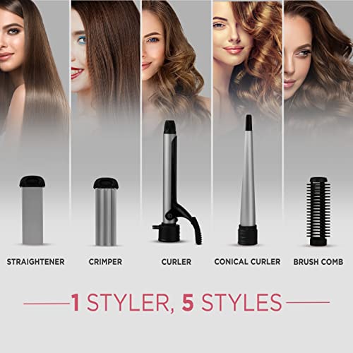 SYSKA HS5000K Hair Straightener with 5-IN -1 Multi-Styling Kit -(Black & Grey)