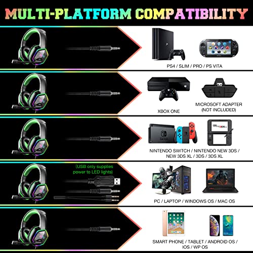 COMPATIBILITY: Professional gaming headset for PC gamers, compatibility with PC (Win 7, Win 8, Win10), PS4 Console, laptops, Mac, and other devices.