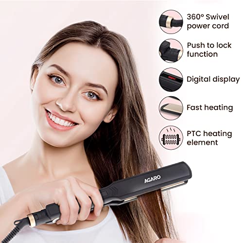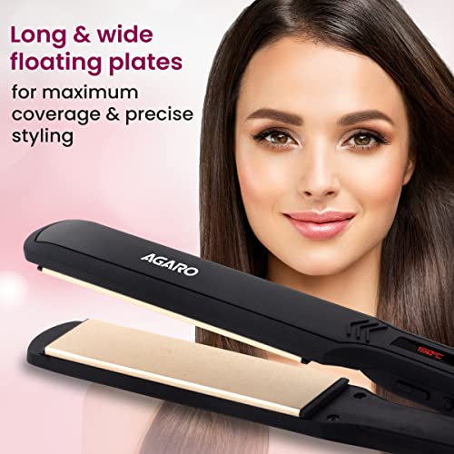 AGARO Hair Straightener, Ceramic Coated Plates, Adjustable Temperature, PTC Heating, Fast Heating, Hair Straightening, Hair Styling Iron For women, HS1947, Black