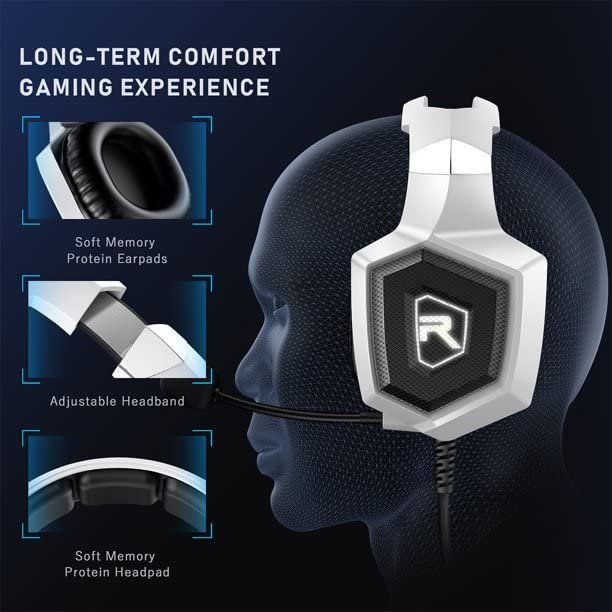RUNMUS GAMING K8 White Premium Wired Gaming Headphone with Surround Sound, Microphone & LED Light, Compatible with PS5, PS4, Switch, Xbox Series X|S, PC, Laptop