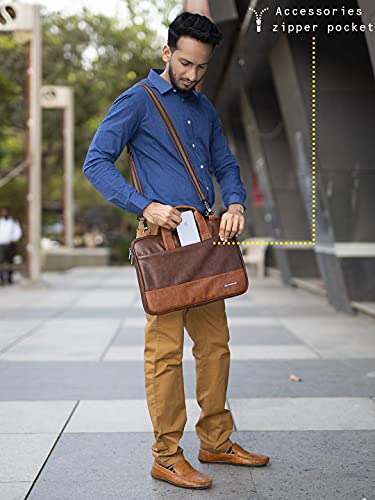 Elegant look and high-quality PU leather Ultra-soft felt, Long-Lasting durable fabric With Zipper Closure and handle. Laptop Briefcase – Compartments: 1 Main zipper compartment and 1 zipper compartment on the front side for other accessories. The shoulder messenger bag features a detachable wide shoulder strap that eliminates shoulder fatigue. The bag can be carried by the handle, worn on shoulders, and positioned across the body. This office laptop bag fits laptops up to 15.6 inches. Ideal for Professionals/Office going Men & Women. Slim, compact suitable for carrying business as well as day to day items like tablet, laptop, charger, phone, battery bank, pen, diary, visiting cards, keys, etc.
