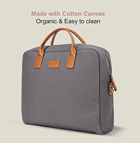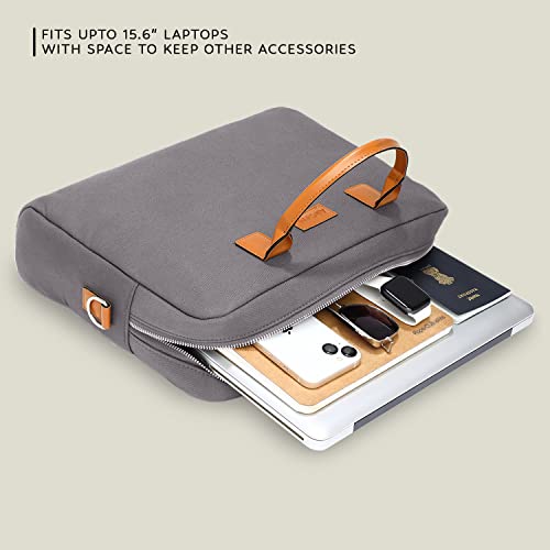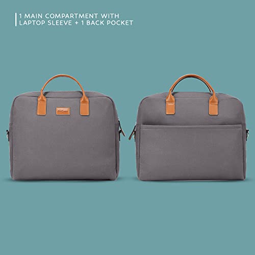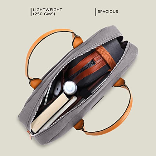 AirCase Office Canvas Sling Messenger Bag fits Upto 15.6″ Laptop/MacBook, PU Leather Handles, Detachable Shoulder Strap, Easy to Clean, for Office/Travel, Men & Women,Grey- 6 Month Warranty
