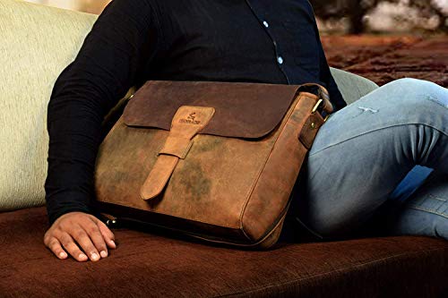 LEADERACHI Making, This messenger bag is a perfect Laptop bag you don’t want to miss. Made of Vintage Hunter leather and detailed with disordered wrinkles and scratches, this messenger bag will make the wearer stand out from all, as it presents the style of retro and wildness and forms a special skin effect to make it the first choice in major brands