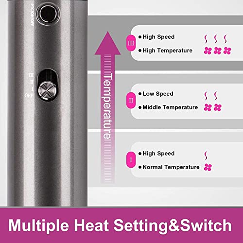 - Three-speed design: It has three temperatures and two wind speeds settings, three temperature settings from 140F to 400F (high speed-low temperature / low speed-medium temperature / high speed-high temperature),and meet your specific hair type: thin, fine, thick, curly or wavy. Note: Turn on the second gear of the hot air brush: low speed and low speed are normal.