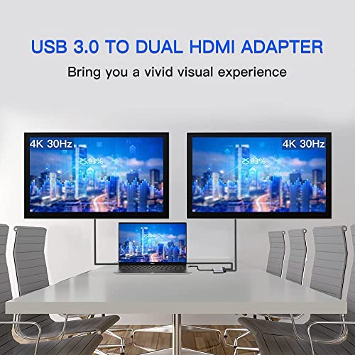 Tobo USB 3.0 to Dual HDMI Adapter – 4K@30Hz and 1080P@60Hz Hdmi Splitter for Dual Monitors, Compatible with Windows/MacOS/Android/Win XP only-TD-962SC-2