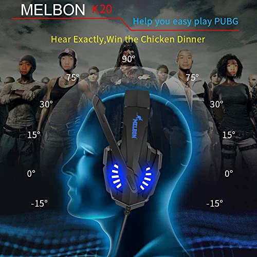 Melbon K20 Gaming Headset, Over Ear Gaming Headphones with Noise Canceling Mic, Compatible with Ps4, Xbox One, Nintendo Switch, Pc, Mac, Laptop, Black