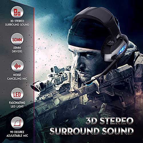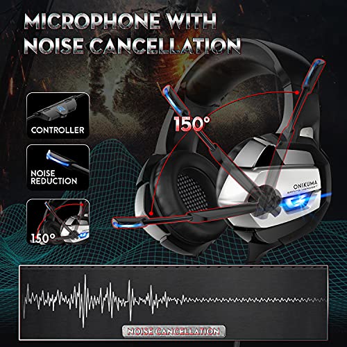 ONIKUMA K5 Wired Gaming Headset with Base Sound and True Noise Cancellation, LED Light and 3.5mm Audio Plug, Nintendo New 3DS LL/3DS,Mac OS PC, iOS Device, Android Device, PS4, PS5 Xbox (Black Grey)