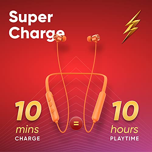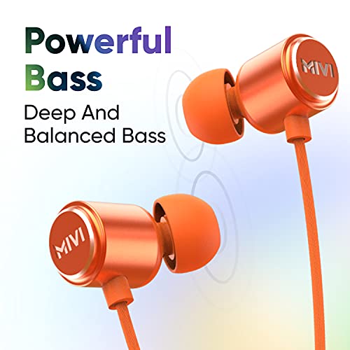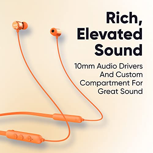 Mivi Collar Flash Bluetooth Wireless in Ear Earphones,24 Hours Battery Life, Booming Bass, IPX4 Sweat Proof, Passive Noise Cancellation, Bluetooth 5.0 with mic (Orange)