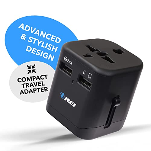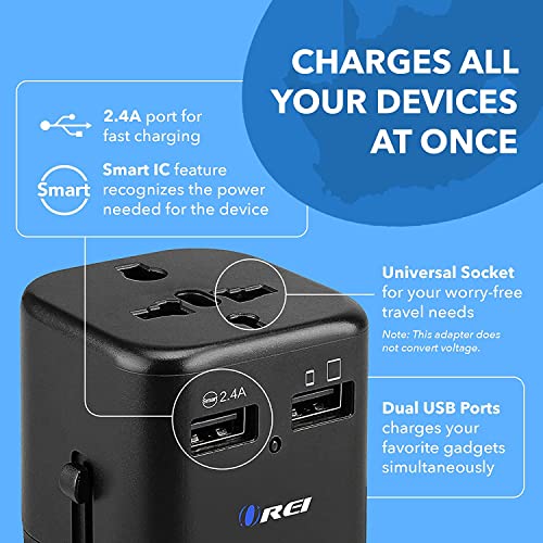 OREI Universal Travel Adapter with 2 USB Ports (2.4A Smart Plug Charging), Multiplug Socket Power Plug for Cell Phones, Tablets, Camera, for Travelers to US, Canada, UK, UAE & More