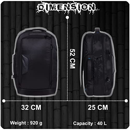 Capacity: 40 liters; Weight: 920 grams; Dimensions: 32 cms x 25 cms x 52 cms (LxWxH)
