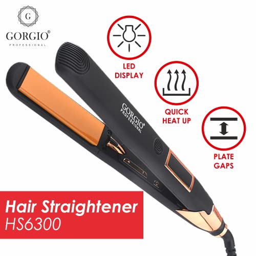 A. Ceramic and teflon coating care for minumum heat exposure to hairb. Ceramic plates for smooth gliding anf movement,the lengh of the plate of hair straightner is suitable for short hair also. C. Fast heating time, heat up in 15 -20 seconds result in to quick hair straightening. D. 220 degree celcius professional temperature.E. Hair straightner fast heat up in 15 secondf. 2 meterheat safe cord.G. 12 months gorgio professional warranty from the date of purchase.