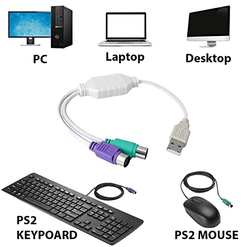 Tobo PS/2 to USB Adapter Cable USB TypeA Connection USB Male to Female PS2 Adapter compatibles Mouse and Keyboard as USB Compatible Device TD-pa2tousb(White) – TD-249TC