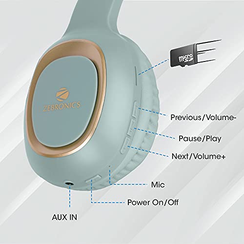Zebronics Zeb – Paradise Wireless BT Headphone Comes with 40mm Drivers, AUX Connectivity, Built in FM, Call Function, 15Hrs* Playback time and Supports Micro SD Card (Green)