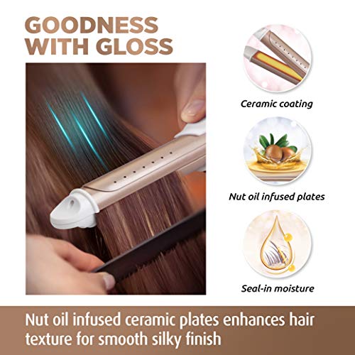 Generic Name : Style-Duo HS 134 2 in 1 Hair Styler, Straightener and Curler with Ceramic and Nut Oil Coating, with LED Display & Temperature settings with 1 Year Warranty (Brown)