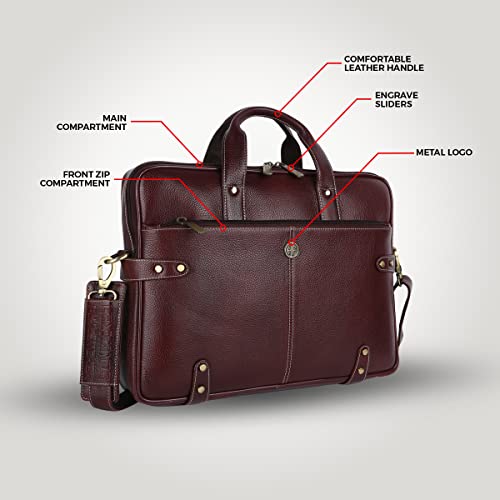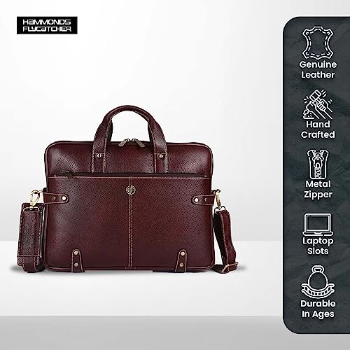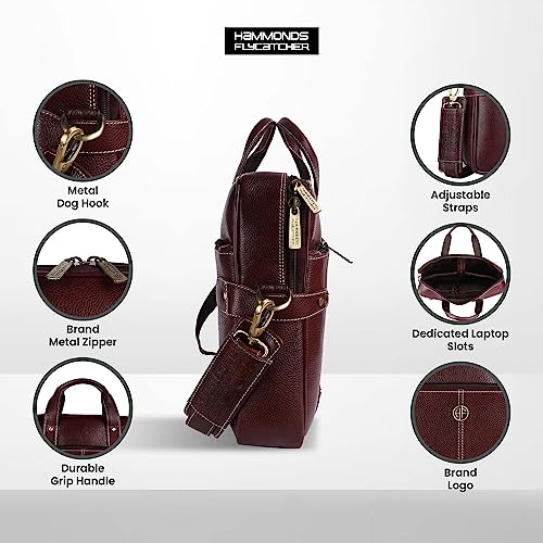 HAMMONDS FLYCATCHER Genuine Leather Laptop Bag for Men/Office Bag for Men, Brown | Fits Upto 16 Inch Laptop/MacBook | Leather Bag with Shoulder Straps | Laptop Messenger Bag/Leather Bag for Men