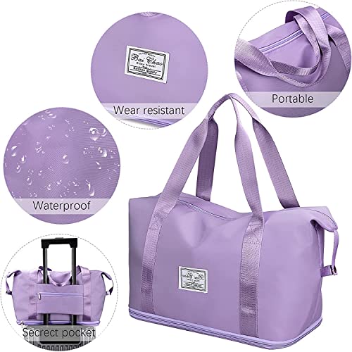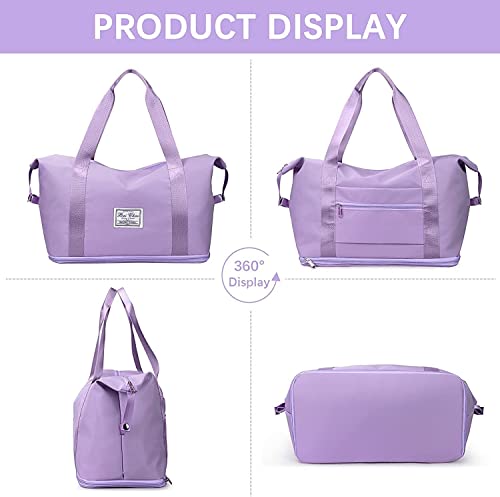 PINZOR Large Capacity Folding Travel Bag Lightweight Waterproof Carry Luggage Bag Travel Duffle Handbags Travelling Bag for Women and Men (Purple)