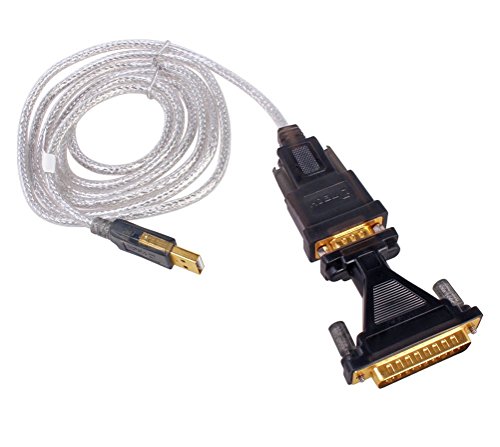 6ft cable with standard USB Type A Male to standard 9-Pin DB9 or 25-Pin DB25 male RS-232 serial connector