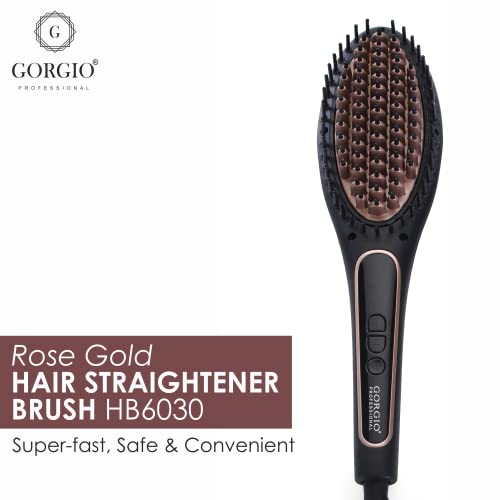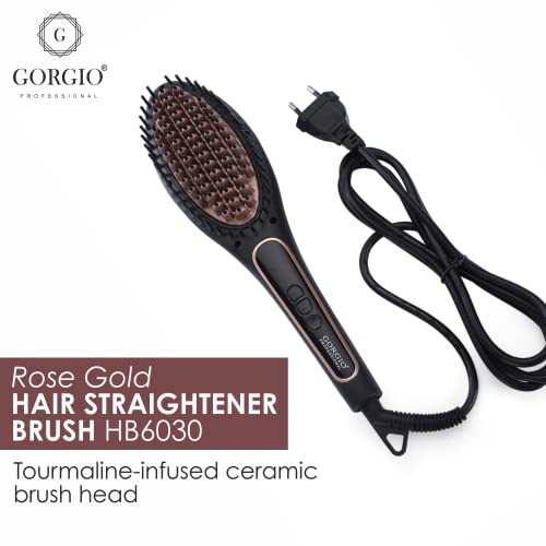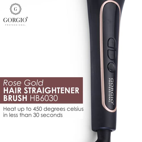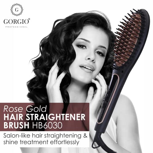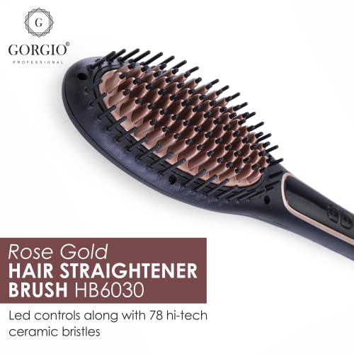 GORGIO PROFESSIONAL HB6030 Hair Straightener With Tourmaline Infused Ceramic Britles n Temperature Controller Straightening Iron Brush, Rose Gold