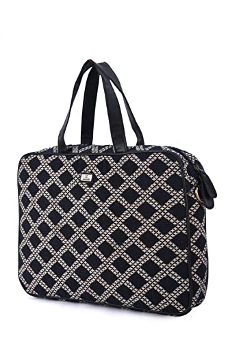 K London Unisex Laptop Messenger Bag | Padded Compartment & Storage Pockets | Lightweight | Travel-Friendly_(Black & Beige)