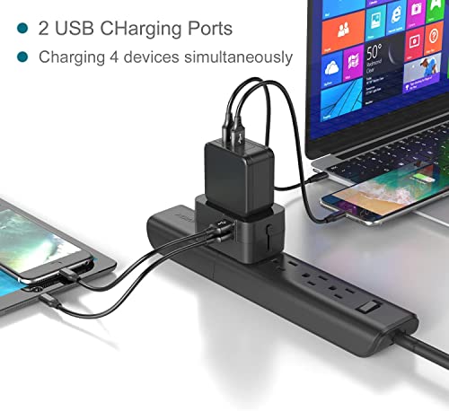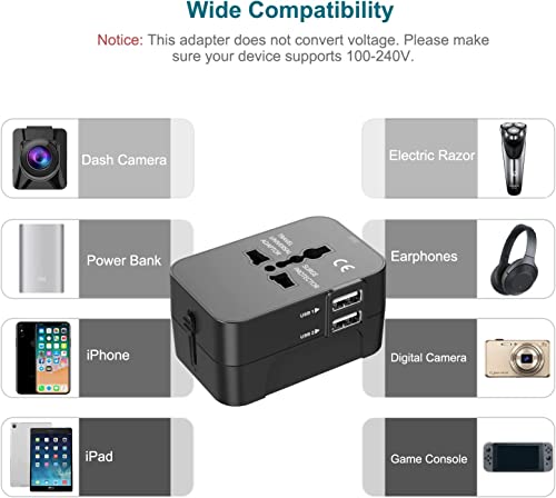 DUAL USB PORTS – World Adapter Plug compatible with almost all USB Devices like Apple iPhone 6 6s 5s 4s, Samsung galaxy s7 s7 edge s6 s6 edge s5 s4, Sony,Nokia, HTC, LG, and so on…