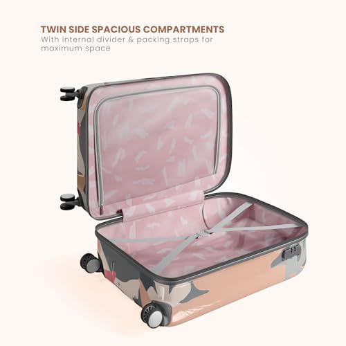 Genie Florentine Pink is a hard luggage range, inspired from beachy vibes with large hand illustrated print and bold colour play. Made with durable polycarbonate shell and having premium grey finish components, this trolley suitcase is power packed with features such as built-in lock to keep your belongings safe and secure, push button trolley to enable you to adjust height easily according to your need. It is lightweight yet durable. The beautiful and trendy print adds to the aesthetic factor, which is bound to get your airport look noticed!
