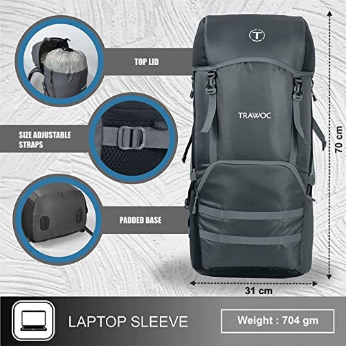 Spacious and lightweight – The 50 Liter capacity travel backpack provides enough space for outdoor travel, camping, hiking, and fishing. A perfect travel bag for weekend vacations or for 2-3 days trip. Dimension: 70 x 31 Cm.