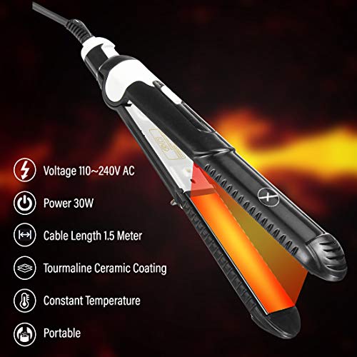 Tourmaline Ceramic coating plates for smooth gliding, even heat distribution & fast heating.