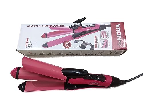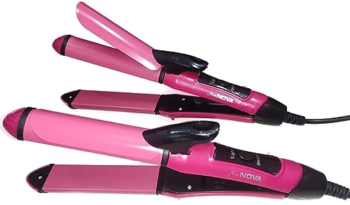 KH STORE NHC-2009 2 in 1 Hair Straightener and Curler(2 in 1 Combo) with Ceramic Plate For Women(Pink)