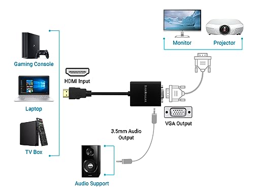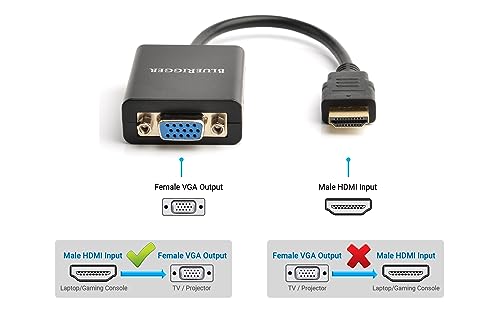 Bluerigger Gold-Plated 1080P Active HDMI to VGA Adapter, Built-in active IC chip converts HDMI digital signal to VGA analogue signal, HDCP compliant.