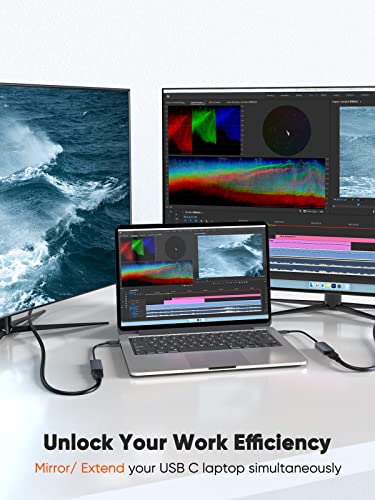 【4K@60Hz UHD Resolution】CableCreation USB C to DP adapter support resolution up to 4Kx2K@60Hz. You can enjoy more clear image on your external monitor or HDTV. PLS NOTE: Apple 12″ MacBook 2015 ONLY supports up to 4K@30Hz. Support Netflix, YouTube, Amazon Prime, Hulu. This DP adapter enables to Mirror or Extend your laptop display to external display. You can add 2 external monitors with two of this USB C to DP Adapters to enjoy different images.