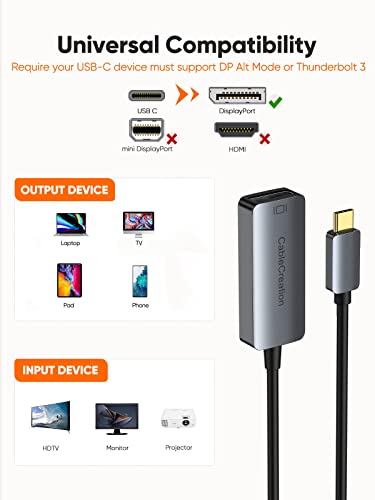 CableCreation USB C to DisplayPort Adapter 4K@60Hz, USB Type C to DP Converter, DP Cable Adapter Compatible with Oculus Rift S, MacBook Pro 2020, iPad Pro 2020,Galaxy S22 Ultra/S20/S10, Aluminum