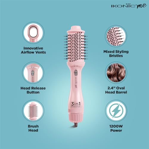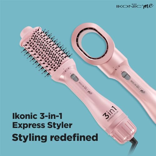 Ikonic 3 in 1 Express Styler Pink, Professional Volumizer Blow Dryer 1200W Hot Air Brush for Women Innovative Air Flow Vents Mixed Styling Bristles Ceramic Titanium Tourmaline-Coated Brush Head, Multi Hair Styler for 75% shinier blowouts results