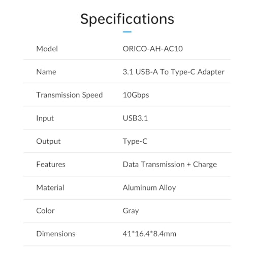 【Small and Portable Gadget】ORICO compact USB-C to USB3.1 adapter is tiny and lighweight (8.4mm*41mm*16.4mm) which takes up no space, and is easy to put in your pocket or stick to your device.